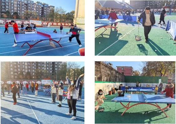 《精准击打》、《托球竞速》、《趣味颠球》、《球王争霸》四项趣味赛事同步开启,学生们主动与居民搭档交流、切磋技巧,居民们耐心指导,偶尔的失误与默契的配合让校园充满欢声笑语。居民和学生志愿者自发捡拾乒乓球的热心举动,让冬日校社情谊悄然升温。